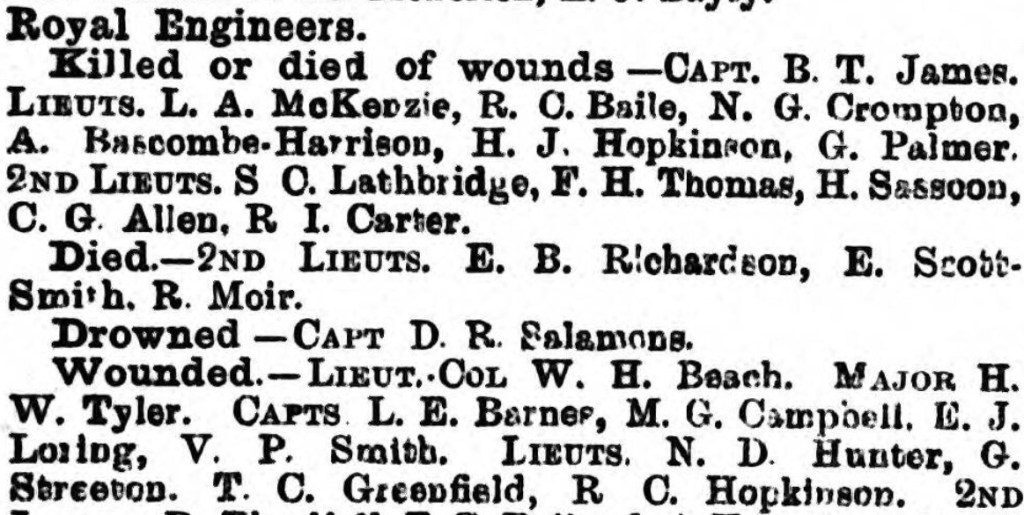 Tom Greenfield was ‘Gazetted‘ and commissioned into the Royal Engineers on 16 December 1914.